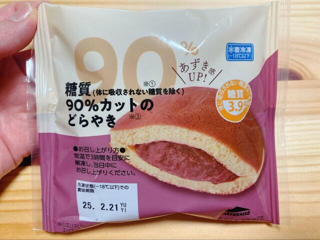 砂糖の代わりにエリスリトールを使うことで、シャトレーゼの通常のどら焼きより糖質を90%もカットした、低糖質のどら焼きです。
