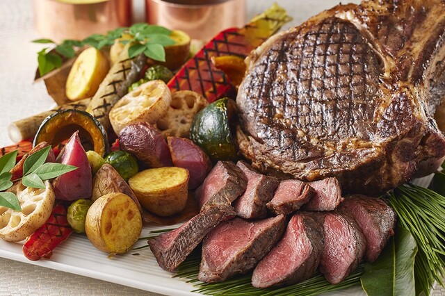 また、ブッフェテーブルには、甘みのある身がしっかりと詰まった「本ズワイガニ」の食べ放題をはじめ、ジューシーに焼き上げた牛肉を3種のソースで楽しめる「牛肉のグリルステーキ」「昆布〆ブリたたきのカルパッチョ仕立て」などの洋食から、胡麻味噌仕立ての「鮟鱇鍋」や「祝肴」「おせち料理」などの日本料理、「苺のショートケーキ」「黒ゴマプリン」などのデザートまで、豪華なメニューが勢揃いします。