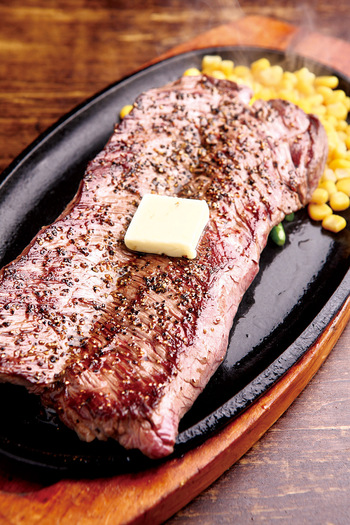上質な肉を大満足のボリュームで提供するステーキ&ハンバーグ専門店。一番人気の「ハラミステーキ」のほか、極上の「US牛リブロース」、「オーストラリア牛ランプステーキ」、ビーフ100%の「手ごねハンバーグ」もおすすめ。