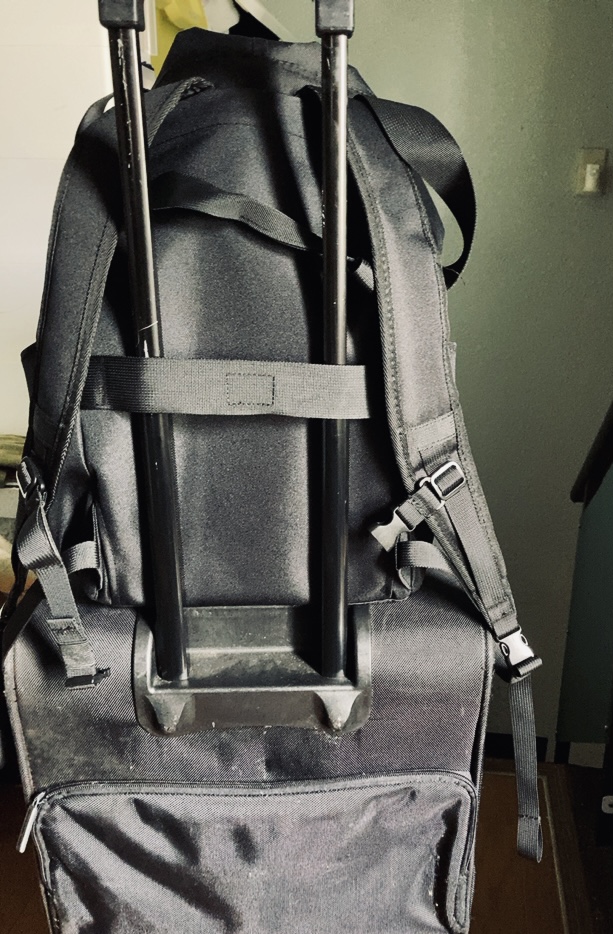 背面にキャリーケース用のバンドを装備しており、旅行時にも活躍します。
