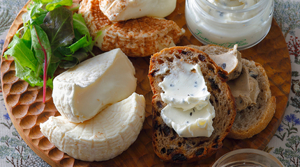 ほかの3つは、酸凝固タイプの完熟チーズ「名もなきチーズ」、それを進化させてスパイスをまとわせた「百花(ももか)」、フルーティーな黒ニンニクを練り込んだクリームチーズ「黒花(こっか)」。この、ちょっとロマンチックで物語を思わせるシェフのネーミングセンスも、いいなと思う。