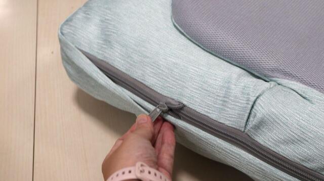 このタイプは名前の通りカバーを着脱・洗濯できるのが嬉しいポイント。グレー、ネイビー、ミントの3色があり、筆者はミントを選びました。