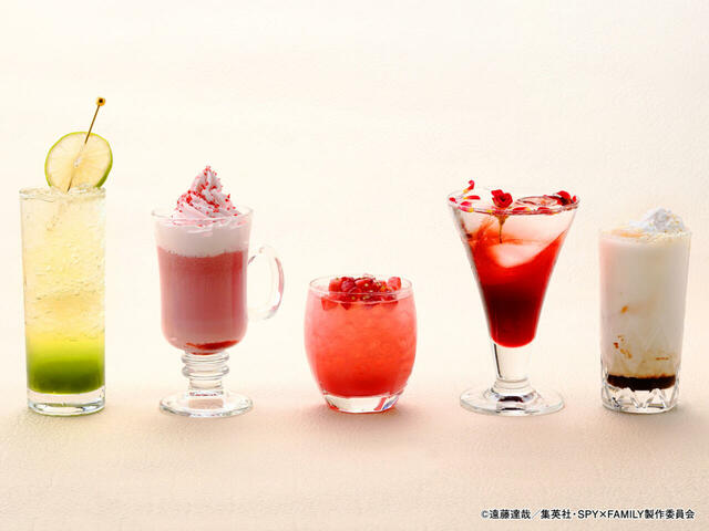 さらに、ビュッフェの食卓を彩るオプションとして、ロイド、アーニャ、ヨル、ボンドをイメージしたノンアルコールドリンクも販売されています。どれもフォトジェニックで美味しさにもこだわった一杯で、購入者にはオリジナルアクリルコースターがプレゼントされます。