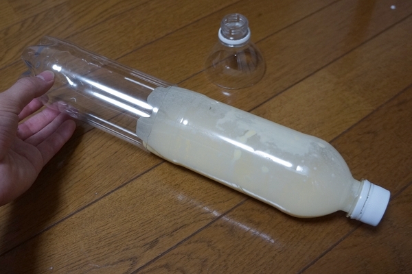 材料の入ったペットボトルに、もう一本同じ形のものを連結させます。