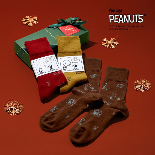 2025年にコミック掲載75周年を迎える『PEANUTS』のレトロ可愛いソックスが登場。