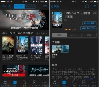 並びながらiTunes Storeでどの映画を観るか品定め中。iTunes Storeなら予告を視聴してから購入orレンタルか選べるので、タイトル買いの不安がありません。わたしは前から気になっていた『LIFE!』を観ることに。