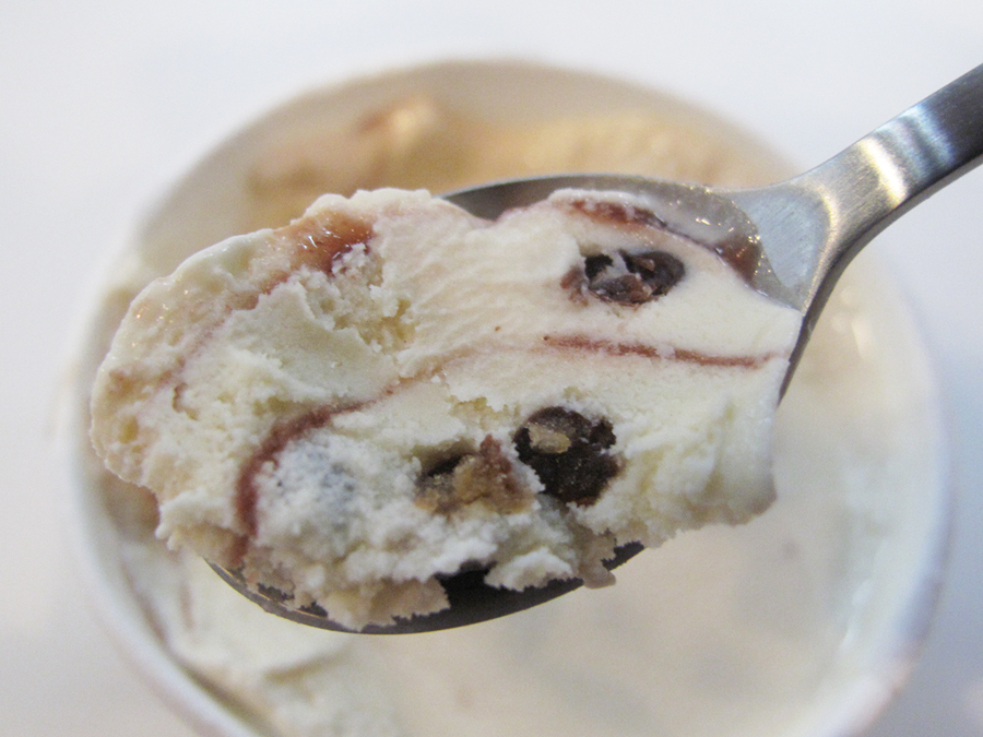 ふたを開けると、うっすら赤みがかったアイスクリームが登場。