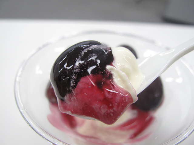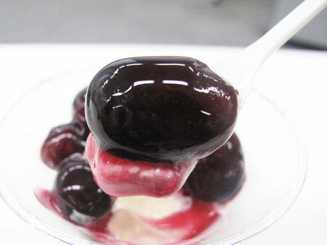ぶどうはチリ産のクリムゾンというシードレス(種なし)品種。そしてソースの色が鮮やかで、アロマテラピーかと思うくらいのとてもいい香りがします。もちろん着色料は一切使われていません。