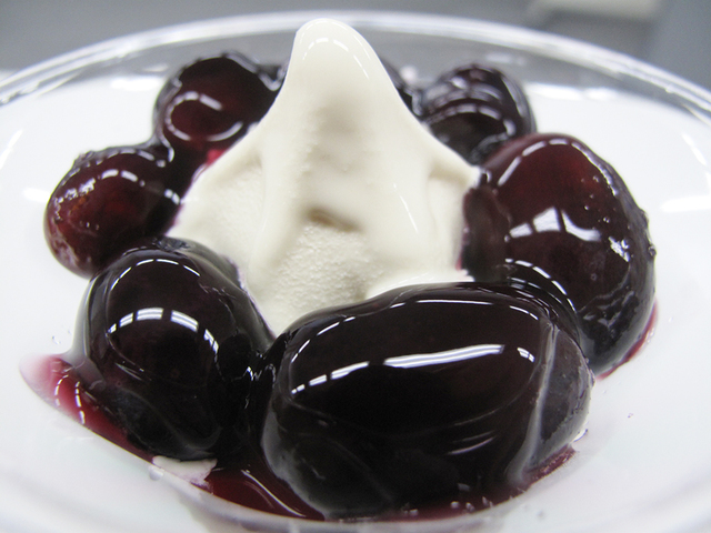 ぶどうに絡むソフトクリームと濃厚ソースが絶品!