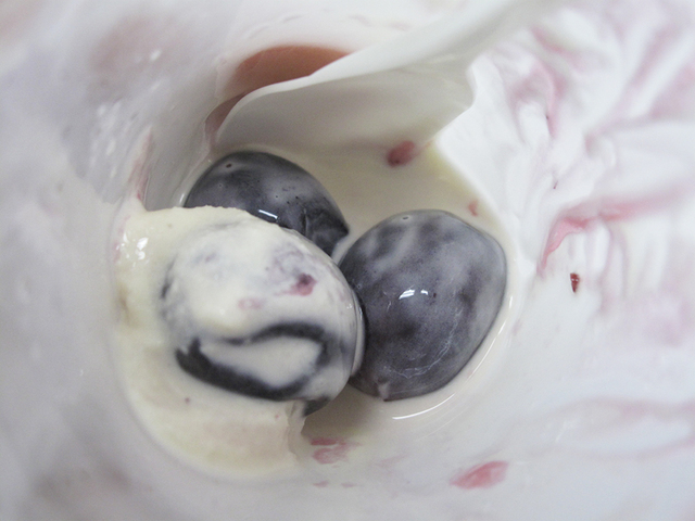 ぶどうは冷凍解凍ということで少し心配でしたが、フレッシュなものと間違ってしまうくらい皮がぱきっと心地よい食感で、酸味と甘みのバランス良く美味しく、実がジューシーです。中には少し半解凍のものもあり、またそのしゃりっとした感じもいけてます。