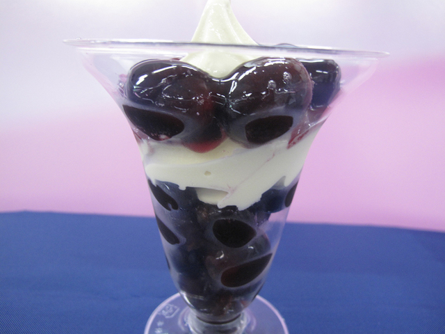 ひと粒ひと粒が小さくソフトクリームとよく絡まりますね。コクのあるクリームがぶどうの酸味ととても調和が良く、ぶどうのボリュームも満足!