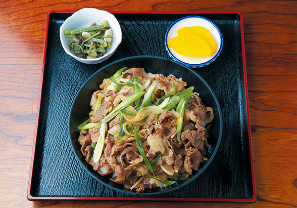 肉丼の大盛りは直径18cmの丼から国産の牛バラ肉が丁寧かつたっぷりと敷き詰められている。庶民派ではあっても、麺はすべて自家製、天ぷらは注文を聞いてから揚げるなど看板メニュー同様、こだわり抜いた熟練の技術でつくっているので、味はピカイチだ。