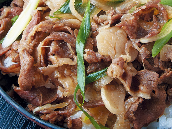 しっかりつゆが染みこんだバラ肉の艶で味の良さがわかる。 拡大画像表示