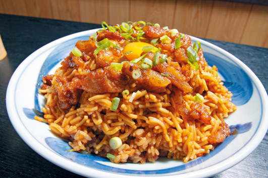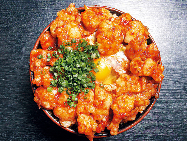 独自のルートで仕入れた国産ホルモンがご飯がみえないほど大量に盛られた丼は、昼・夜問わず大人気。50年以上、2代に渡って受け継がれている、ニンニクや韓国産唐辛子をブレンドした醤油ベースの秘伝タレで絡めて炒められており、濃厚な味はクセになること間違いなし。