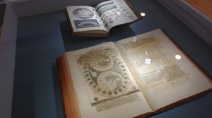 また、中世の天文学の書物も展示。昔の人って、真面目な天文学の書物なのに月や太陽のモチーフに目や口といった表情を描き込んでいて面白いです。