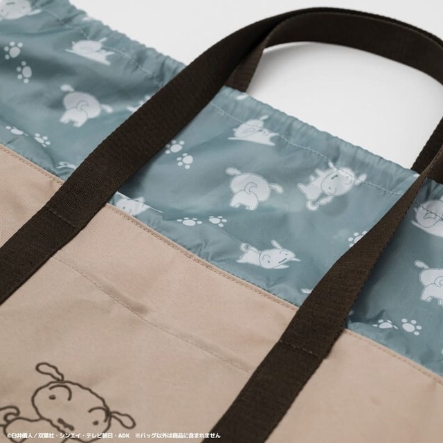どちらのバッグも愛犬・シロがポイント!保冷バッグは刺繍で、エコバッグはふわふわのワッペンで、シロがデザインされています。かばんからはしんちゃんのタグもちらり♪シンプルでさりげないデザインも魅力です。