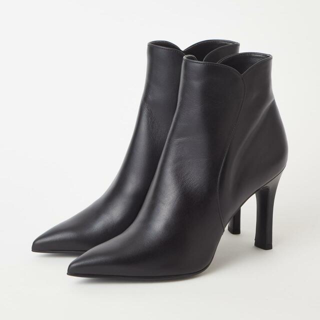横井「長年ご好評いただいている美シルエットブーツがリニューアルして登場。トゥ先をすっきり伸ばしたややロングノーズのポインテッドで、より美しさが際立つシルエットに進化。ヒールは華奢に絞った板ヒールを採用し、きれいなシルエットながらも安定感も抜群に。