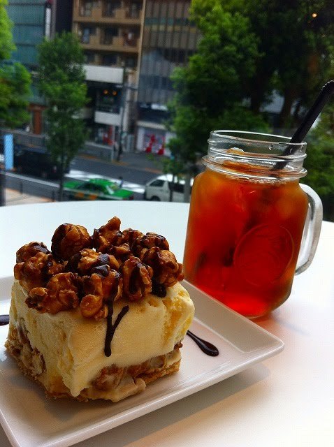 通りが眺められる窓際の席にアイスが運ばれてきました。見るからに美味しそうなビジュアルです。