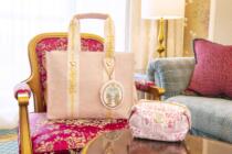 ロビーから降りてくる曲線階段を表しているものや、蝶のオーナメント、お花の刺繍のオーナメントが優美!