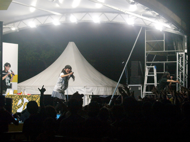 初日のENJOY STUDIUMとSMILE GARDENのステージふたつを連続で見ましたが、ライブのラストにやってくる『R.O.D.』で観客を酸欠寸前に追い込むような展開は激ヤバです。ロッテルダムテクノのような高速ビートで崩壊寸前までダンス&ジャンプ!日本国内のアイドルシーンのみならず、海外でも通用するスタイルを身に着けつつあるのかも・・・。