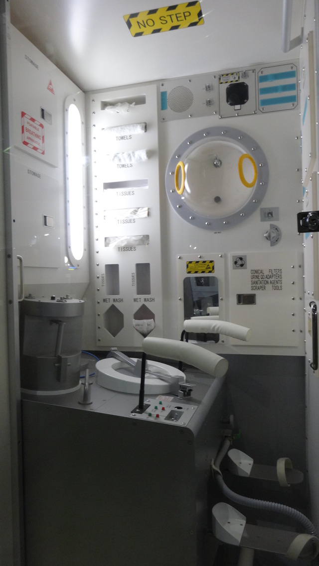 他にも、ISSの居住モジュールのトイレや寝室の実物大モデルも展示。中には入れないのですが、どのような作りになっているのか見ることができます。