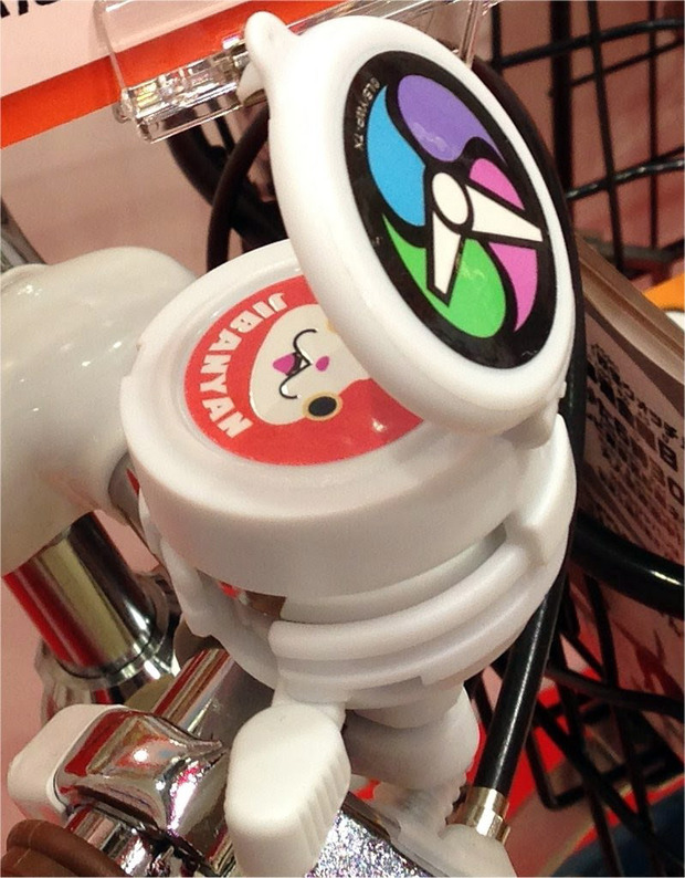 妖怪を召喚できる『妖怪ウォッチ』を模したデザインで、これをとりつけるだけで、タウンであなたの自転車は大注目となるでしょう(主に子供に)。