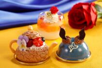 フレッシュケーキのお皿には「あまおうジュレとチョコムース」や「苺のショートケーキ」、スモークを閉じ込めたバブルがはじけると苺の入ったジュレが現れる「アロマバブルジュレ」など、演出も楽しい4種が取り揃えられています。