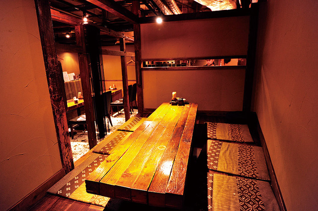 タン刺しやなめろう、餃子など、一風変わった馬肉料理を提供することで人気の居酒屋。高級部位を贅沢に使っているメニューは、生肉の“初心者”でも安心して食べられると好評だ。古材を使ったインテリアが印象的な、隠れ家風の雰囲気もココならではの魅力。