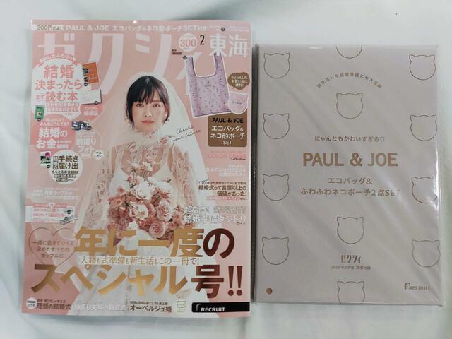 リクルートから12月23日に発売された結婚情報誌『ゼクシィ』2025年2月号の付録は、ポール&ジョーの「エコバッグとふわふわネコポーチ」の2点セットです。