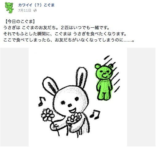 「カワイイ(?)こぐま」には、Facebook公式ページとTwitter公式アカウントがあり、主人公の「こぐま」の日常を描いた物語がイラストとともに投稿されています。どうやら、その物語がとても面白いらしく、ユーザーの間でじわじわと注目を集めているのだとか。