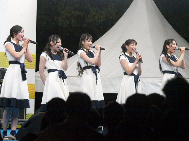 立ち姿からしてオーラがありますし、そんな彼女たちが軽やかに、それでいてしっかりと律せられて舞い踊るんですから美しくないわけがありません。日が落ちた野外ステージ、SMILE GARDENの照明の中に浮かび上がる彼女たちは、まさしく天女の舞、という雰囲気。