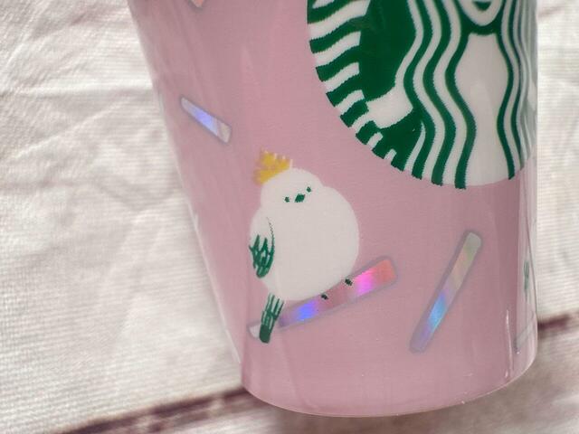 カラーは淡いブルーで、フロントにスタバのシンボルであるサイレンロゴとシマエナガのプリント入りデザイン!