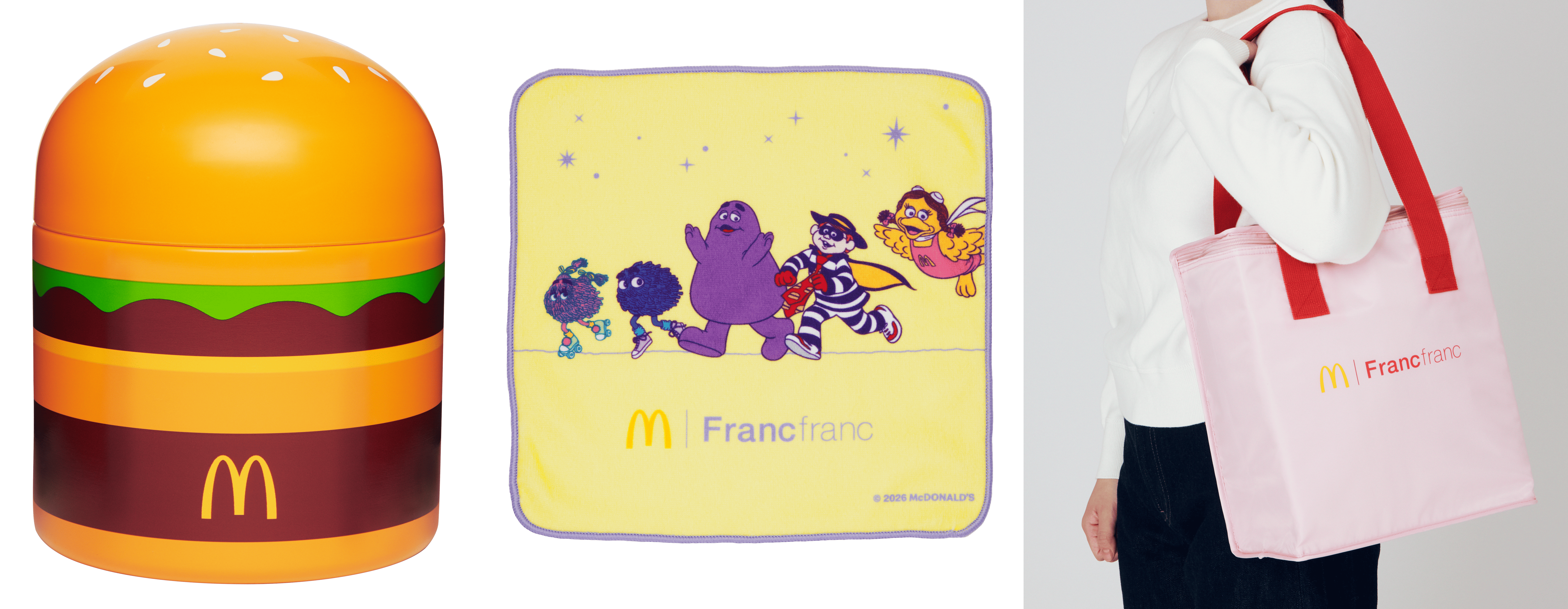 世界配信同日の2024年12月26日(木)より、Francfranc店舗(限定24店舗)とFrancfrancオンラインショップに登場します。ポップなアイテムは、日常使いはもちろん、飾ってもよさそうです。
