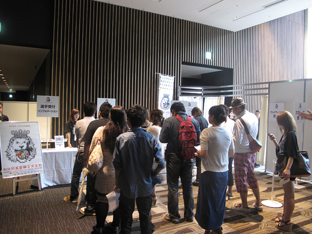 受付はすでに闘志を燃やすスロッターたちで熱気ムンムン。受付をすませた出場者からは、「ウェイティングルーム」へと移動する。