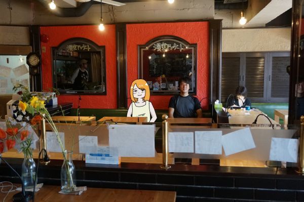 並んだ僕ともり子さん。イラストと実写の融合はオモトピア史上初めての試みであります。なんか昭和のアニメでこんなのあった気がする。