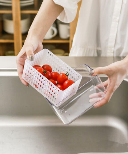一般的な保存容器にザルがついているので、例えば野菜を保存容器に入れて洗った後、ザルでそのまま水切りができます。