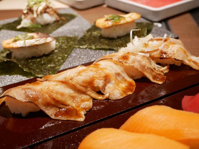 期間限定メニューとして、冬が旬、愛媛県産宇和海産の脂の乗りが絶品な、宇和海産 寒ぶり握りや宇和海産 寒ぶりねぎ味噌手巻き、北海道ブランド豚『ゆめの大地豚』を使用した肉寿司、北海道 ゆめの大地豚カルビ握りや北海道 ゆめの大地豚カルビ握り~黒煎り七味~も必食です。