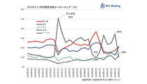 コロナ禍で大幅に売り上げを失ったのち、ポストコロナで市場を回復しつつあるカメラ。12月の販売台数前年比も、123.7%と活況を呈した。PCやテレビと異なり、昨年夏ごろまではおおむね前年比増で推移。秋口に大きく前年を割れる場面もあったが、11月、12月では勢いを取り戻し、昨年を大幅に上回った。特に伸びたのがレンズ一体型のコンパクトカメラ。12月の台数前年比が132.7%を記録した。一方、単価上昇で勢いが鈍化したレンズ交換型は、8月以降販売台数で前年割れが続いていたが、12月に101.0%と、わずかながら前年を上回った。カメラ全体では12月、販売台数シェア25.5%でトップだったキヤノン。販売台数前年比が151.4%と売り上げを大幅に伸ばした。シェア18.6%で2位の富士フイルムは前年比107.3%と好調を維持。11.8%のシェアを獲得し初めて3位まで浮上したケンコートキナーは、前年比256.8%と大健闘した。しかしシェア10.4%のKODAKはそのあおりで89.7%と2桁割れに終わった。9.7%のシェアで5位にとどまったソニーも、92.4%と前年を下回った。