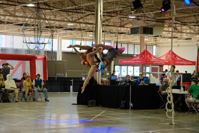 物販のブース以外では、サーカスのような空中ブランコショーやプロレスショーもあり。アニメコンベンションという枠を超えていますね。