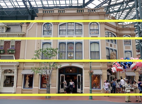 ちなみに、この縮尺の建物の演出はワールドバザール以外にも、アドベンチャーランドにある街並みのエリアでも見ることができます。