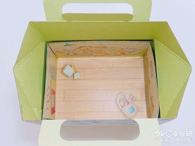 屋根を開くと、フローリングの床に投げ出されたダッフィーのバッグや、クッキー・アンのレシピメモが見えてワクワク!