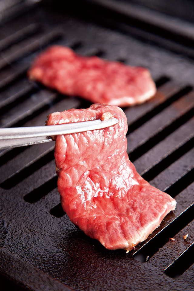 国産の黒毛和牛A5ランクをリーズナブルに提供する店として名高い。宮崎の備長炭で焼き上げた厚切り肉は、余分な脂が落とされ、舌の上でトロけるおいしさ。
