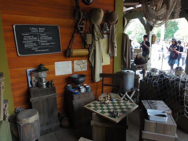 月曜日から金曜日まで船長が心待ちにしているであろうランチメニューの表や、動物型の駒が置かれたチェス盤といった遊び道具、さらに世界地図やランタンといった仕事道具まで休憩室に置かれています。