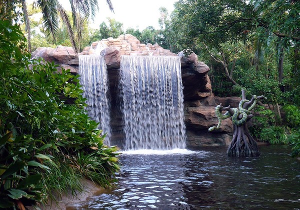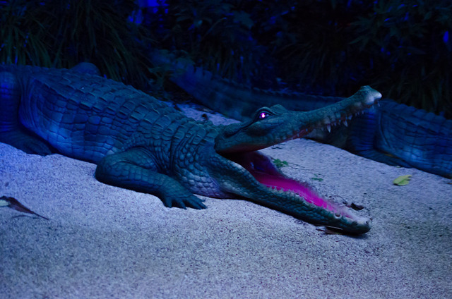 美しいその光景はこれまでには無かった演出。更にこれまでは暗闇の中に隠れて見えにくかったワニ等の目が怪しく輝くという効果も加わっています。