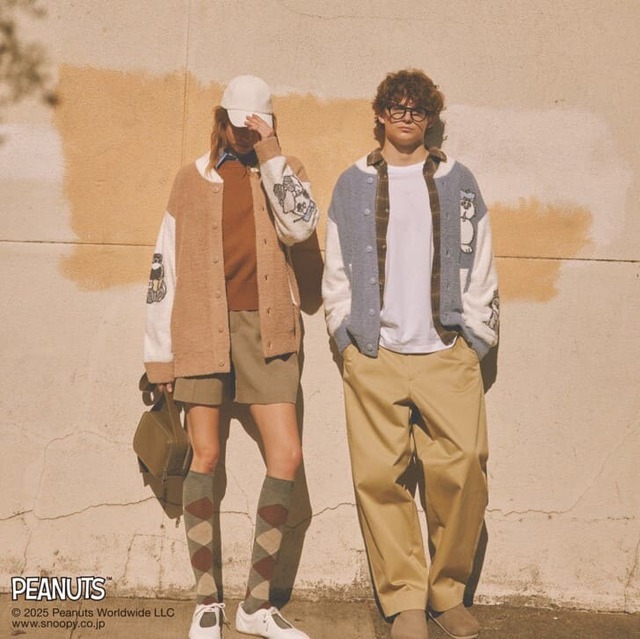 「SNOOPY×BEAR ジャガードニットシリーズ」は、ベアをぎゅっと抱きしめるスヌーピーをジャガードでデザインした、オリジナルアートのニットシリーズ。カーディガンは、ボタンもベアモチーフとなっていて遊び心たっぷりです。