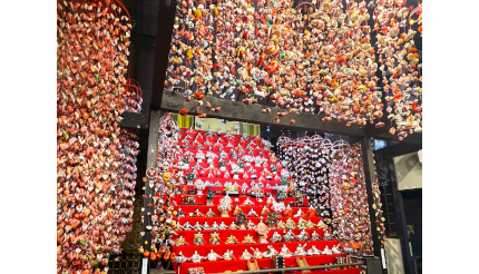 「雛のつるし飾り」は、ひな祭りの際に雛壇の両脇に手作りの人形をつるすという、伊豆稲取温泉の伝統文化で、娘の健やかな成長を願う思いを人形に込めてひな祭りを祝う、母娘のつながりを感じる心温まる風習。