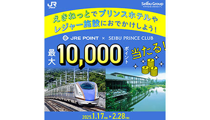 JR東日本と西武ホールディングス(西武HD)は、条件を満たすと最大1万ポイントが当たる「えきねっとでプリンスホテルやレジャー施設におでかけしよう!」キャンペーンを1月17日~2月28日に開催する。