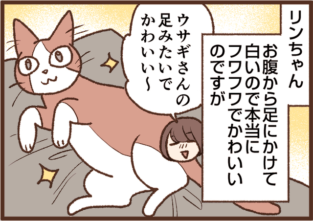 リンちゃんは毛づくろいも大変好きみたいなので本当に腹毛も手足も真っ白できれいなのですが、トトは本当に変わってて、なんとなく毛づくろいとかもこう…