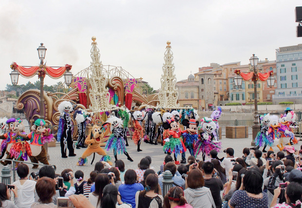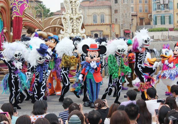 リドアイルに到着したディズニーの仲間たち。スケルトンたちはそれを大喜びで迎えます。スケルトンの願いをかなえるため、各キャラクターは協力をすることになります。このショーだけのオリジナルのコスチュームで各キャラクターは登場します。