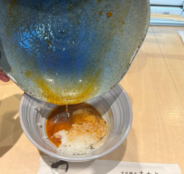 余った卵を、肉の旨味が染み出た汁と一緒にご飯にかければ、まさに極上の一膳の完成です。最後の一口まで最高の味わいが楽しめるというわけです。